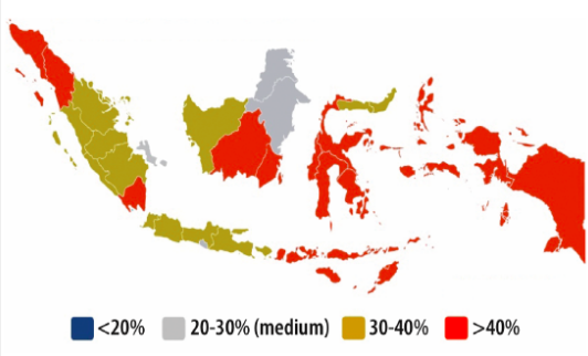 Figure 1: Geographical distribution of stunting prevelance in Indonesia