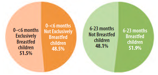 Early introduction of complementary food (at 4 months) is common and infants can be introduced to food tastes at an even earlier age (from 1 to 3 months of age). This partly relates to the widespread belief that breastmilk is not nutritious enough to meet infant needs.  Caregivers also report breastfeeding difficulties, especially for infants under 6 months (see Figure 4). These difficulties are linked to a perceived lack of breastmilk by the caregiver and a child “refusing” the breast, or breast pain. The lack of perceived breastmilk could be linked to the established practice of using infant formula as an early food introduction. The common practice of mixed feeding through supplementation of breastmilk can then have a physiological impact on breastmilk production (i.e. less suckling leading to less milk production).