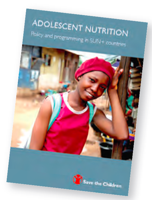 Adolescent Nutrition is a report by Save the Children that presents what is being done in Scaling Up Nutrition (SUN) countries and in India to address adolescent nutrition through policy and practice. It sets out roles and responsibilities for adolescent nutrition at the ministerial and agency levels. The report describes current policies and programmes aimed directly at addressing adolescent nutrition (e.g. multiple micronutrient supplementation and nutrition education in schools) as well as those designed to improve it indirectly (e.g. increase access to water and sanitation facilities at schools to improve menstrual hygiene management). The report highlights the urgency of addressing adolescent nutritional needs, both to maximise their own growth potential, as well as to improve birth outcomes and nutritional status of their infants and children. The SUN movement represents an important opportunity to bring attention to adolescent nutrition issues and promote the inter-sectoral collaboration required to address them holistically.
