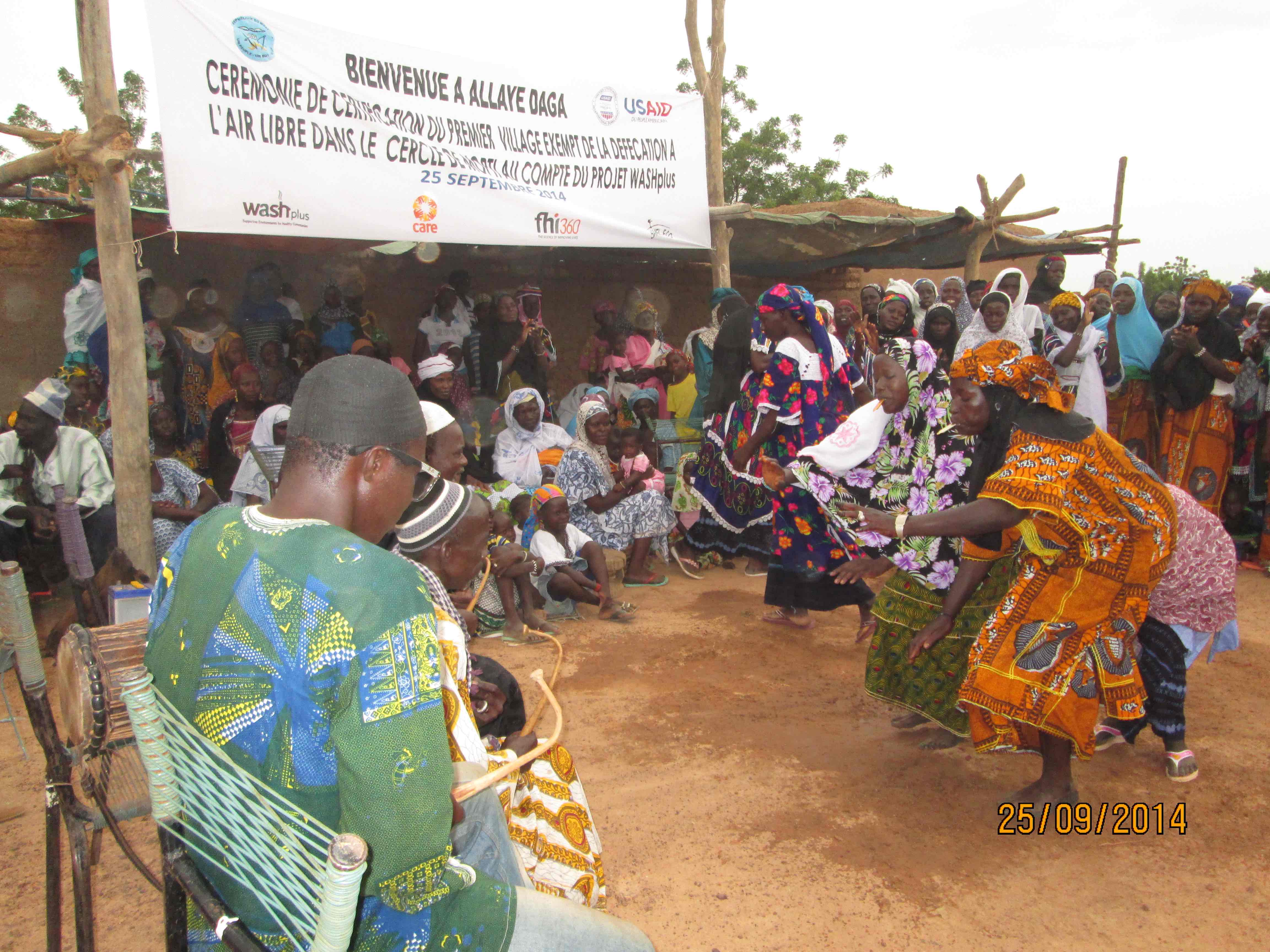 WASHplus found that inciting competition among communities was effective in changing behaviour and achieving results in a short timeframe. It also helps maintain a community’s momentum. Further, providing incentives to benefit the community, such as rehabilitating a broken water point, encouraged them to move quickly. One community used village funds to purchase chlorine products and then established a sanitation shop in the village to provide regular access to these products. Another village created a sanitation store to provide durable latrine covers. Households that did not purchase a cover or used a damaged cover were fined. Finally, the villagers of Yarou Plateau emulated its neighbours from nearby Gouna by building latrines, sweeping the whole village every Thursday, and treating drinking water that resulted in reduced incidences of diarrhoea and a clean community.