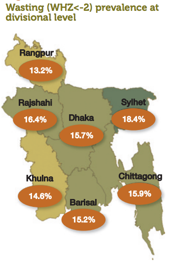 Figure 2: Wasting (WHZ<-2) prevalence at divisional level