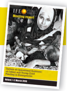 The Infant and Young Child Feeding in Emergencies (IFE) Core Group is an established collaborative effort that develops guidance and resource material, documents lessons learned and builds aspects of capacity on IFE. Current members include United Nations agencies, international non-governmental organisations (NGOs), networks and expert individuals, coordinated by ENN.