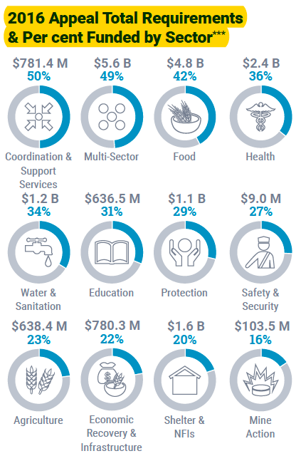 Figure 1: 2016 appeal total requirements and percentage funded by sector*