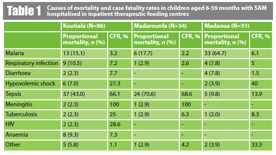 Mortality and causes of mortality in children 6-59 months of age admitted to inpatient therapeutic feeding centres in Niger
