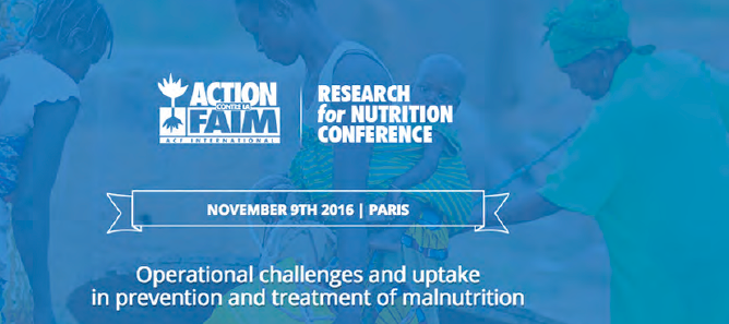 To help fill this gap, Action Contre la Faim (ACF) recently organised an international conference entitled ‘Research for nutrition - operational challenges and research uptake in prevention and treatment of undernutrition’, hosted in Paris on November 9th 2016. ACFs longstanding experience in programming and operational research in humanitarian settings, active research portfolio on malnutrition prevention and treatment, and openness to share challenges as well as successes, meant we were well placed to convene this gathering. The conference had two main objectives: to present a selection of the latest research related to the identification of effective nutrition specific and sensitive interventions in crises contexts, and to provide a space for discussion and debate about nutrition research methodological design and uptake challenges. Almost 200 individuals participated, with 12 international universities, 16 international non-governmental organisations (INGOS) and seven donors among those represented.