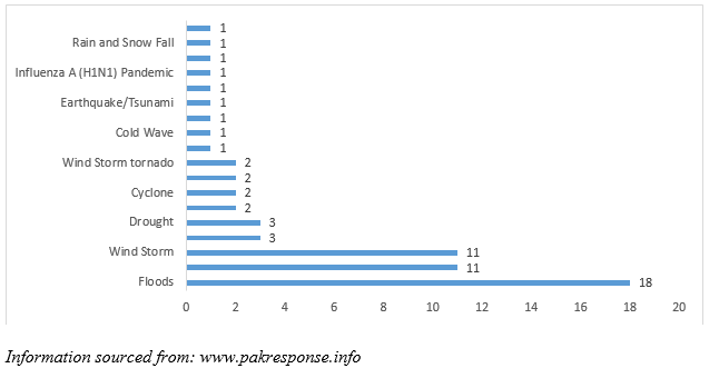Figure 1: Frequency of natural disasters in Pakistan from 1935 until 2011