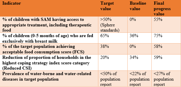 Food security and livelihoods-related interventions were designed to increase access of the targeted beneficiaries to adequate and diversified food through appropriate activities. The main activities under the FSL component were cash-transfer programing and livestock assistance.
