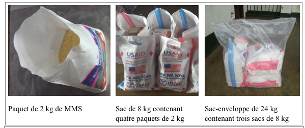 Un/une soignant(e) a parlé des avantages de l'emballage sur le plan de l'hygiène, « Les paquets sont très bons, car la farine est protégée de beaucoup d'éléments non hygiéniques. Parfois par exemple, un enfant qui attend la ration juste ici au PDD peut déféquer. Vous êtes en train de le nettoyer quand votre nom est appelé pour que vous alliez chercher votre ration, alors vous y touchez sans même vous laver les mains... Donc, les paquets protègent la ration de beaucoup de choses. »