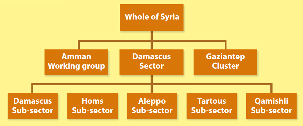 Flexible and adaptable coordination: In the northeast of Syria, WoS coordinators across all sectors took on extra responsibility to coordinate the response between actors in the northeast who are operating across the border, mainly from Iraq and Qamishli (sub-national sector of Damascus hub), by facilitating information sharing on the response gaps for the Raqqa crisis and assigning roles to partners based on their access and operational capacity.