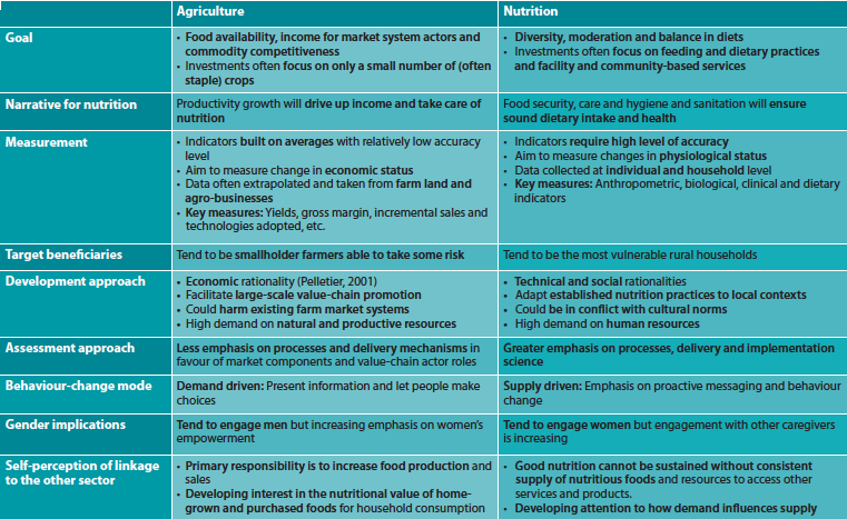 Table 1. Disciplinary differences between agriculture and nutrition practitioners/researchers
