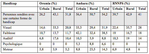 Tableau 1: Le handicap chez les personnes âgées en Éthiopie et par région, 2013