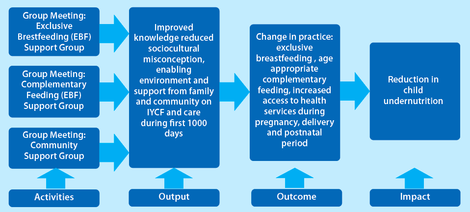 Figure 1: Simplified theory of change for the community-based IYCF support group model