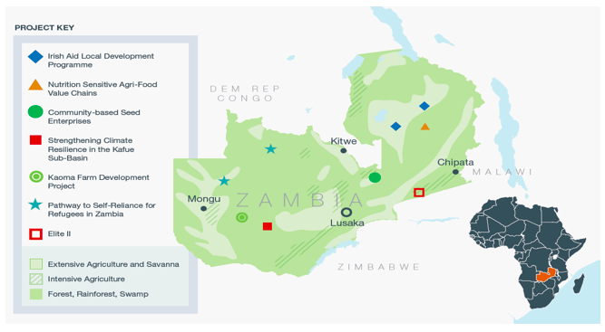 Figure 1: Map of key nutrition-sensitive agriculture projects in Zambia