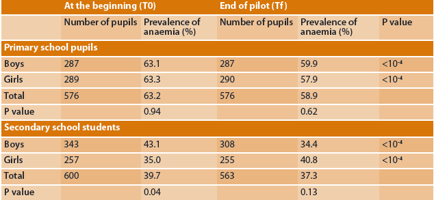 Table 1: Anaemia prevalence at baseline and end of pilot project