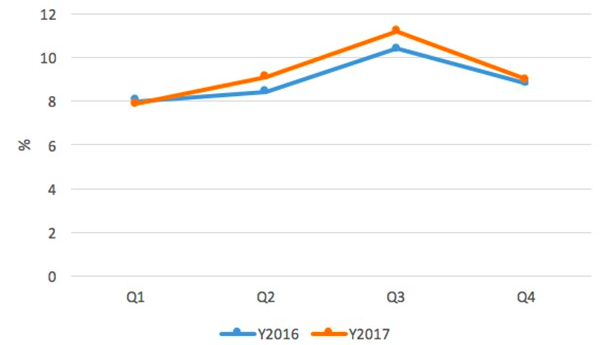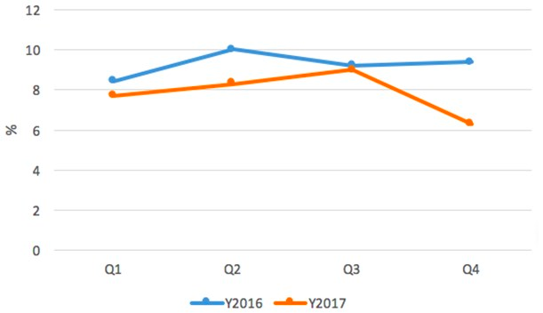 Graphique 4 : Tendances nationales de malnutrition aiguë globale (MAG) dans les communautés, 2016-2017