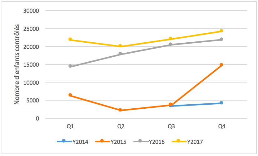 Graphique 2 : nombre total d'enfants contrôlés dans un centre de santé sentinelle, 2014-2017