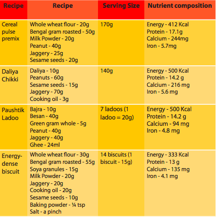 A recipe book was developed for underweight mothers, which was explained through live demonstration sessions based on four local recipes (see Table 3). Pretesting showed that mothers took a keen interest in these sessions, which were successful in increasing their involvement and practical knowledge.