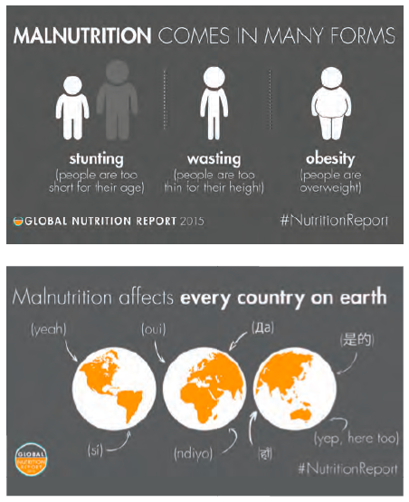 In light of these opportunities, this year’s Global Nutrition Report (GNR) – the third in the series – focuses on the theme of making and measuring SMART (specific, measurable, achievable, relevant and time-bound) commitments to nutrition, and what it will take to end malnutrition in all its forms by 2030. The report aims to make it easier for governments and other stakeholders to make high-impact commitments to ending malnutrition in all its forms. Equally importantly, the 2016 GNR aims to make it harder for stakeholders to avoid making such commitments.