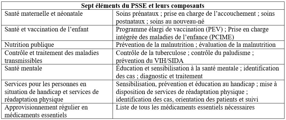 Tableau 1 : Sept éléments du paquet de soins de santé essentiels (PSSE) du MSP en Afghanistan et leurs composants