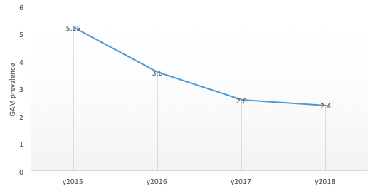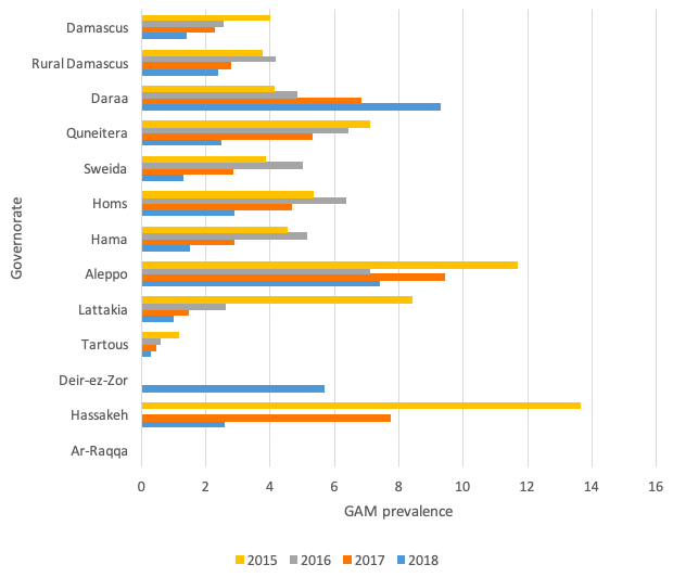 Figure 10 : Prévalence de la MAG résultant de la surveillance nutritionnelle en Syrie, 2015-2018
