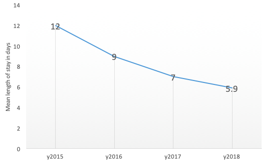 Figure 12 : Durée moyenne d’hospitalisation dans les CS, 2015-2018