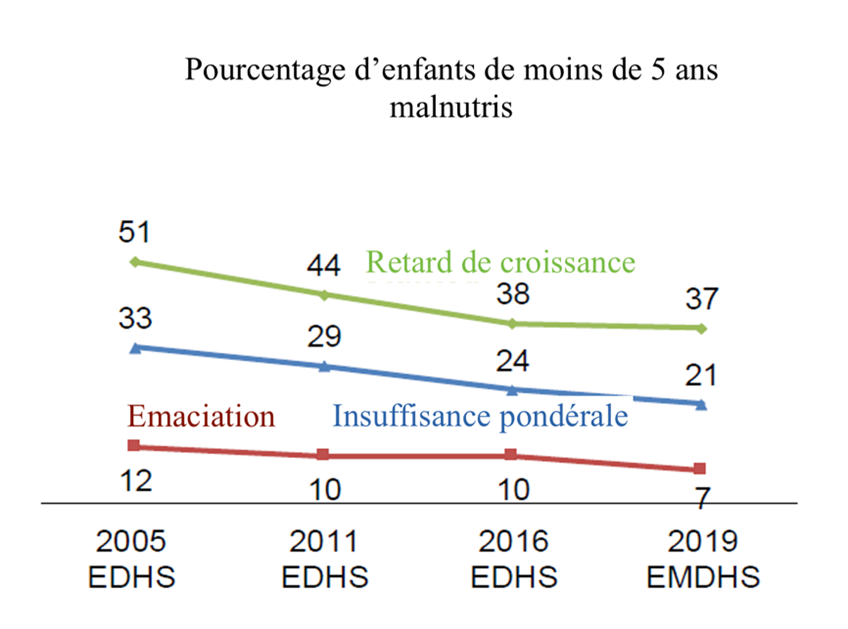 Figure 1 : Tendances de l’état nutritionnel des enfants en Éthiopie (EMDHS, 2019)