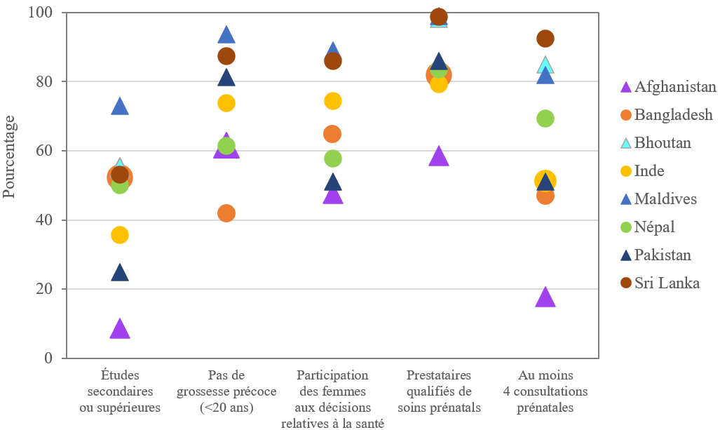 5 Données issues d’enquêtes représentatives à l’échelle nationale : EDS de l’Afghanistan (2015) ; NFHS-4 en Inde (2016) ; EDS des Maldives (2016-2017) ; EDS du Népal (2016) ; EDS du Pakistan (2017-2018) ; EDS du Sri Lanka (2007).