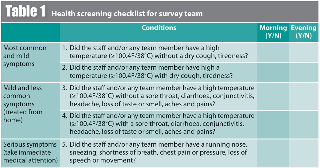 All survey team members tested negative for COVID-19 prior to the survey and no one developed other signs/symptoms of COVID-19 or became unwell during the survey implementation.