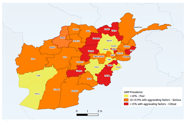In situations like Afghanistan where recent and timely gold standard data sources are not available, a globally validated standard methodology and guideline for geographic prioritisation is required to support the better identification and targeting of locations with critical nutrition needs. This has relevance to the next iteration of the Nutrition Humanitarian Needs Analysis Guidance to come in 2021 (GNC 2020).