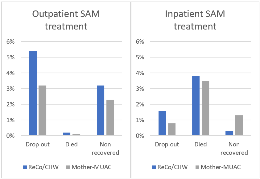 Figure 3: Treatment performance indicators (Mother-MUAC vs. ReCo/CHW)