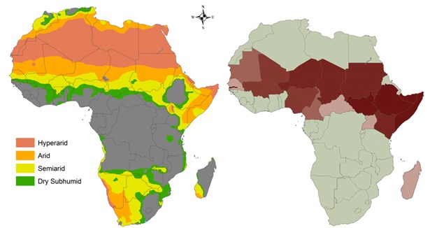 Les zones arides africaines se caractérisent par des zones arides et semi-arides de faible altitude, essentiellement peuplées de communautés pastorales et agropastorales dont les systèmes de production ont évolué pour s’adapter à ces environnements difficiles. Les variations climatiques sont extrêmes, les pluies imprévisibles et les températures saisonnières peuvent atteindre 40 voire 50 oC.