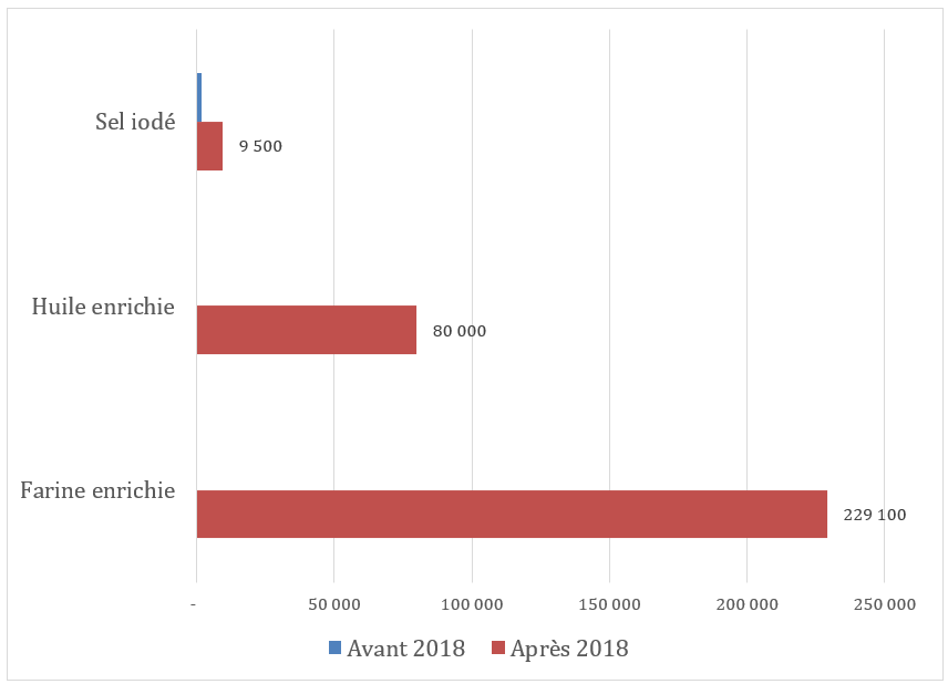 Figure 3 : Disponibilité des aliments enrichis en Haïti avant et après 2018, en tonnes
