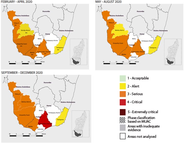 Integrated Food Security Phase Classification (2020) Madagascar: Acute Malnutrition Situation February - April 2020 and Projections for May - August 2020 and September - December 2020: http://www.ipcinfo.org/ipc-country-analysis/details-map/en/c/1152677/?iso3=MDG