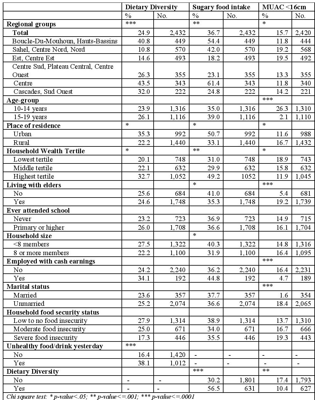 Determinants of adolescent nutritional status and practices in Burkina Faso: A pooled secondary analysis