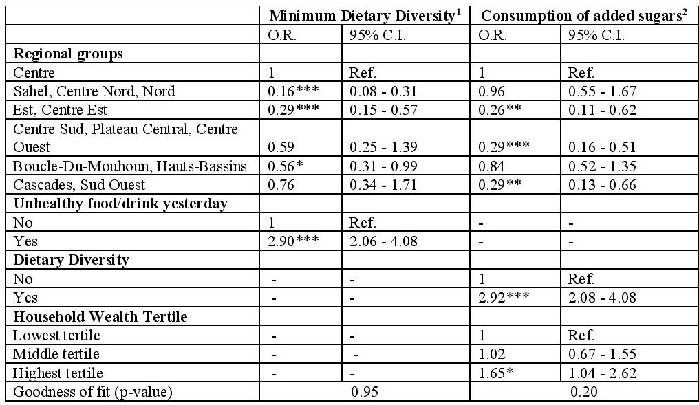 2Adjusted for regional groups, dietary diversity and household wealth tertile