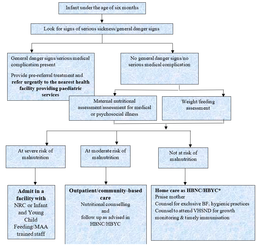 A high-quality, comprehensive, community-based package of care for at-risk infants in the first six months of life and their mothers is needed in India. This needs to include lactation support, improved growth monitoring coverage, nutritional classification (severe/moderate/not at risk), medical assessment, appropriate action and referral services.