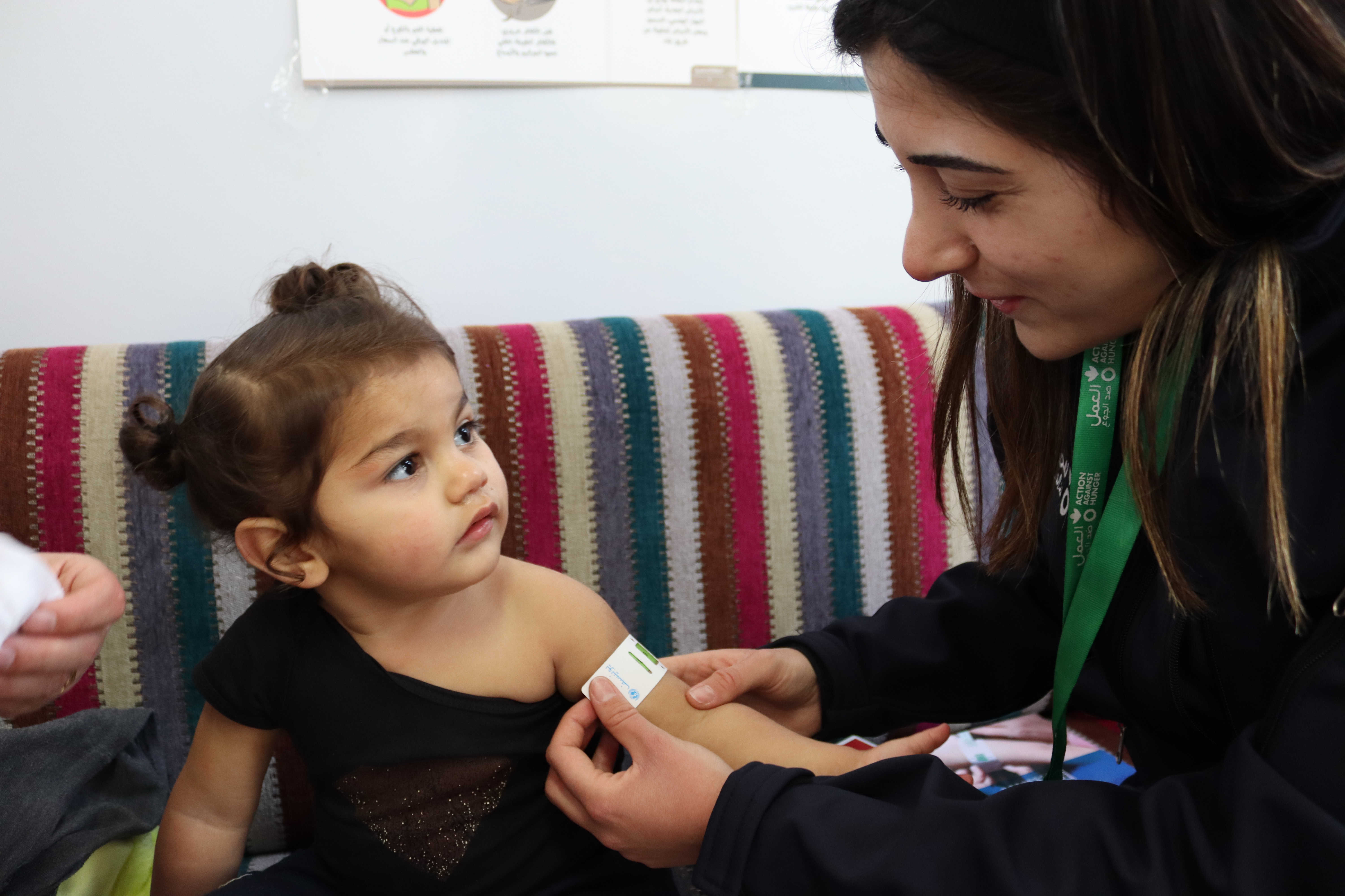 La mesure, au sein des communautés, du périmètre brachial des femmes enceintes et allaitantes et des enfants âgés de 6 mois à 5 ans a été instaurée à l’échelle du pays fin 2022. Action contre la faim a intégré ces composantes au sein de ses programmes et oriente ainsi les femmes et enfants souffrant de malnutrition vers l’établissement de soins de santé primaires le plus proche en vue de leur prise en charge.