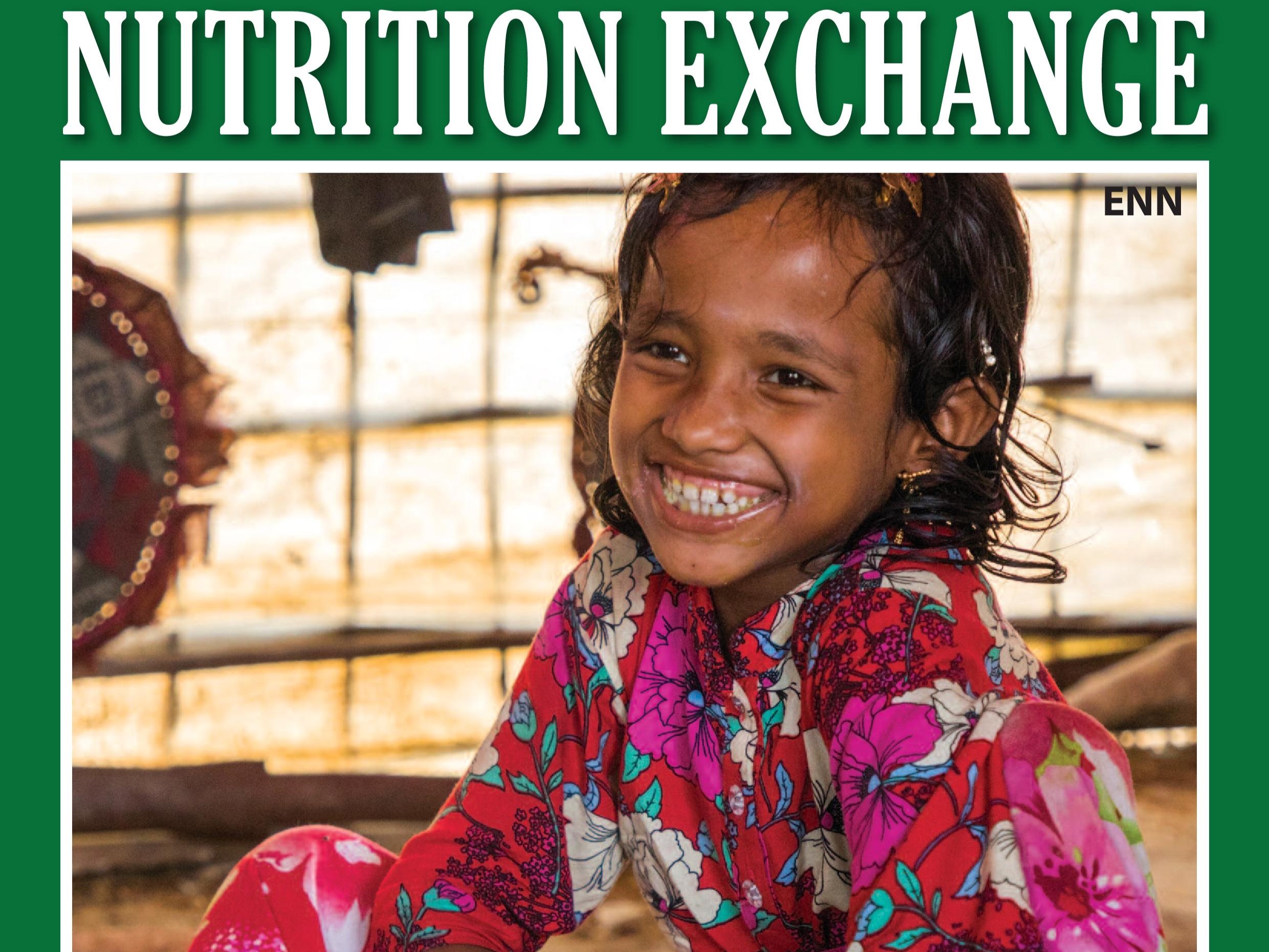 Front cover of Nutrition Exchange Spanish version of issue 10. Image shows a young girl eating from bowl and smiling.
