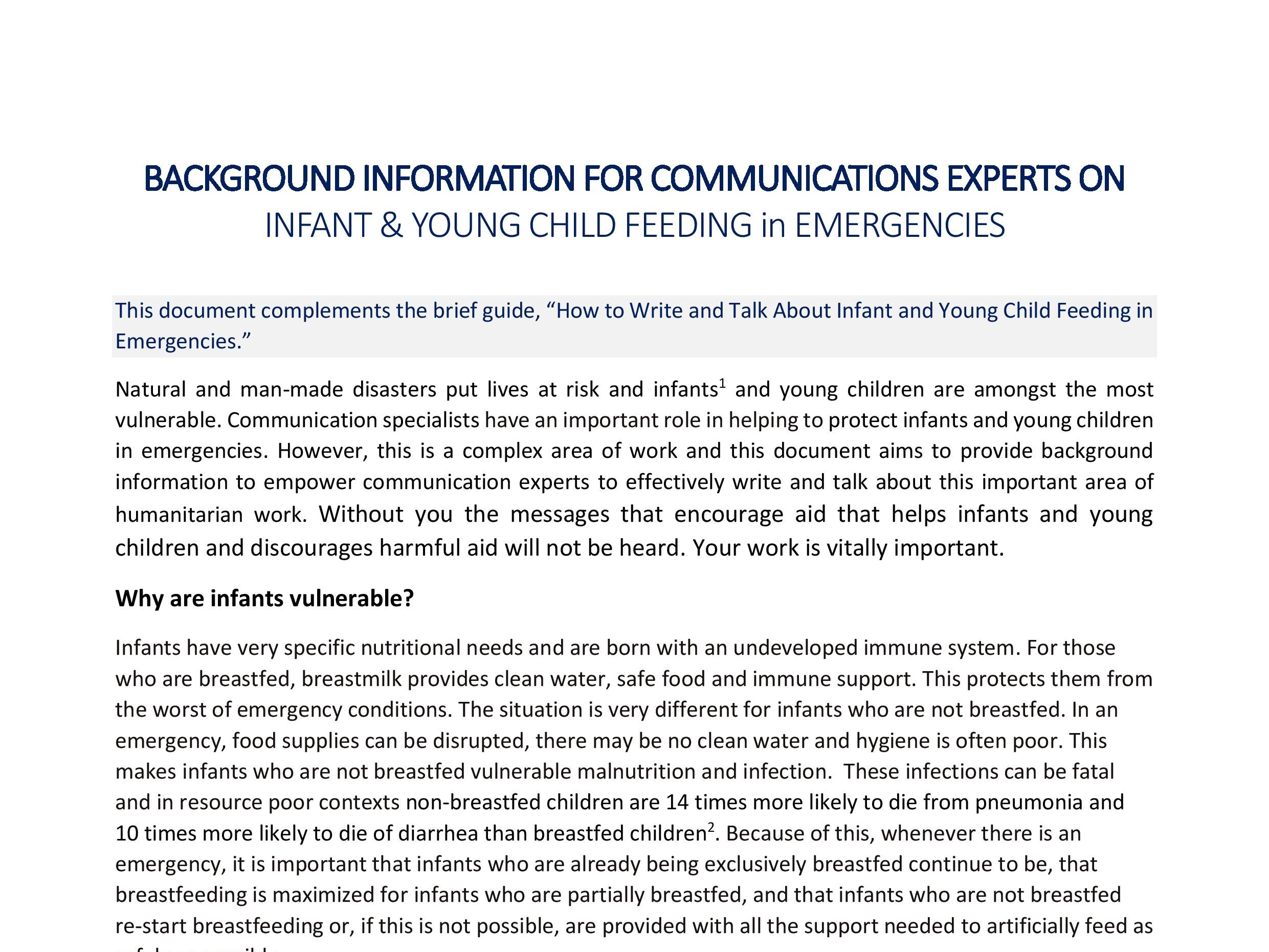 Background information for communications experts on infant & young child feeding in emergencies