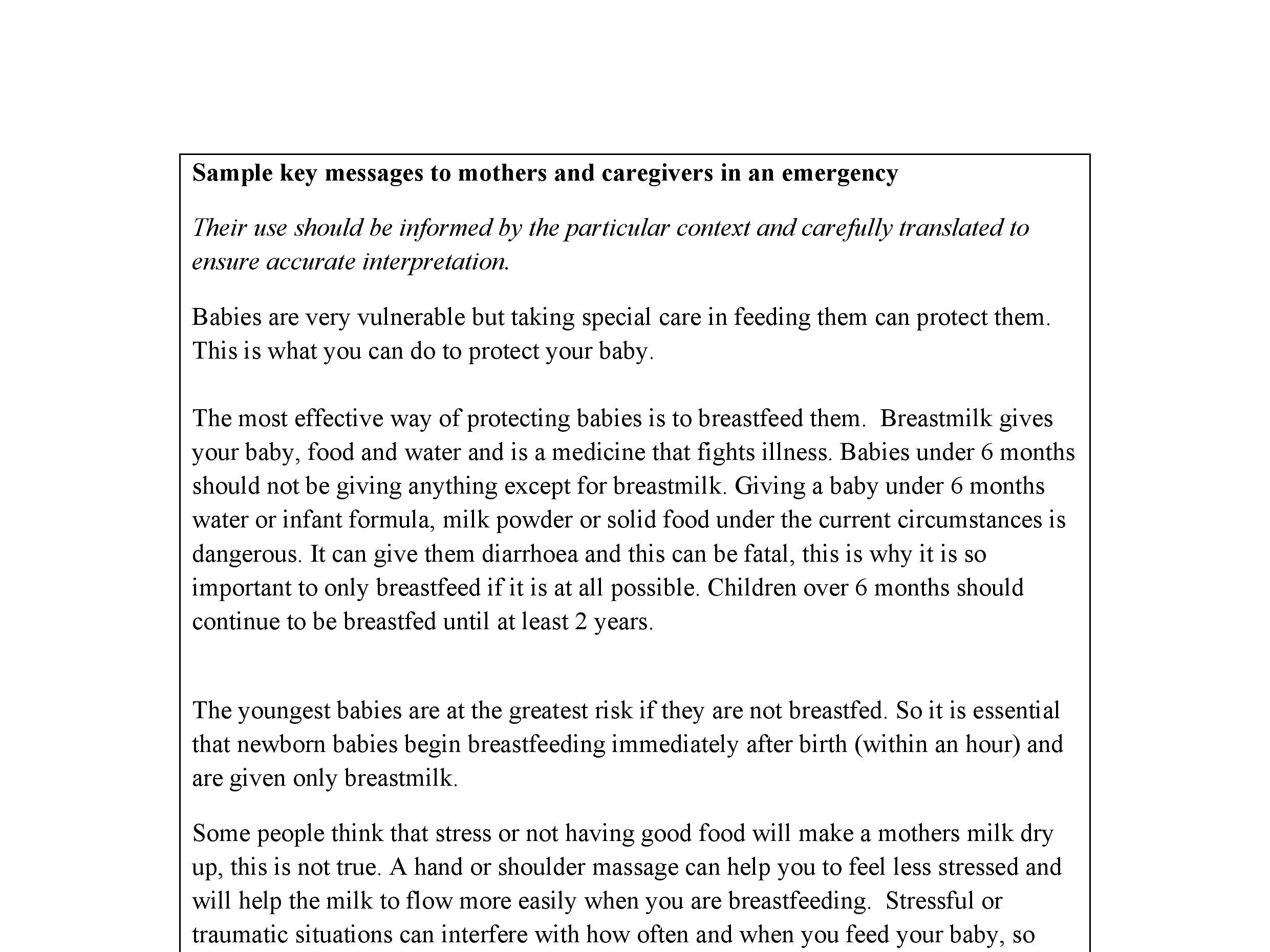 Key messages on IFE for mothers and caregivers
