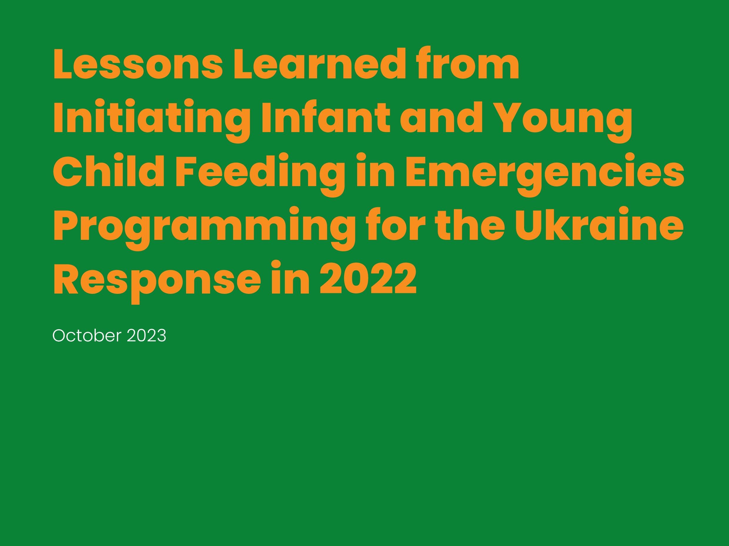 The Russian Federation’s full-scale invasion of Ukraine in February 2022 resulted in the largest and fastest displacement of people in Europe since World War II. Most of those displaced were women and children and as such, the need for urgent infant and young child feeding in emergencies (IYCF-E) support was clear. This informal study focused on capturing technical lessons learned during preparedness and the initial six months of the response in Ukraine (February – August 2022), in particular exploring in-country perspectives of global and regional technical IYCF-E support. It draws on the experiences of 35 individuals directly involved in the early response, where 69 percent were Ukrainian nationals.
