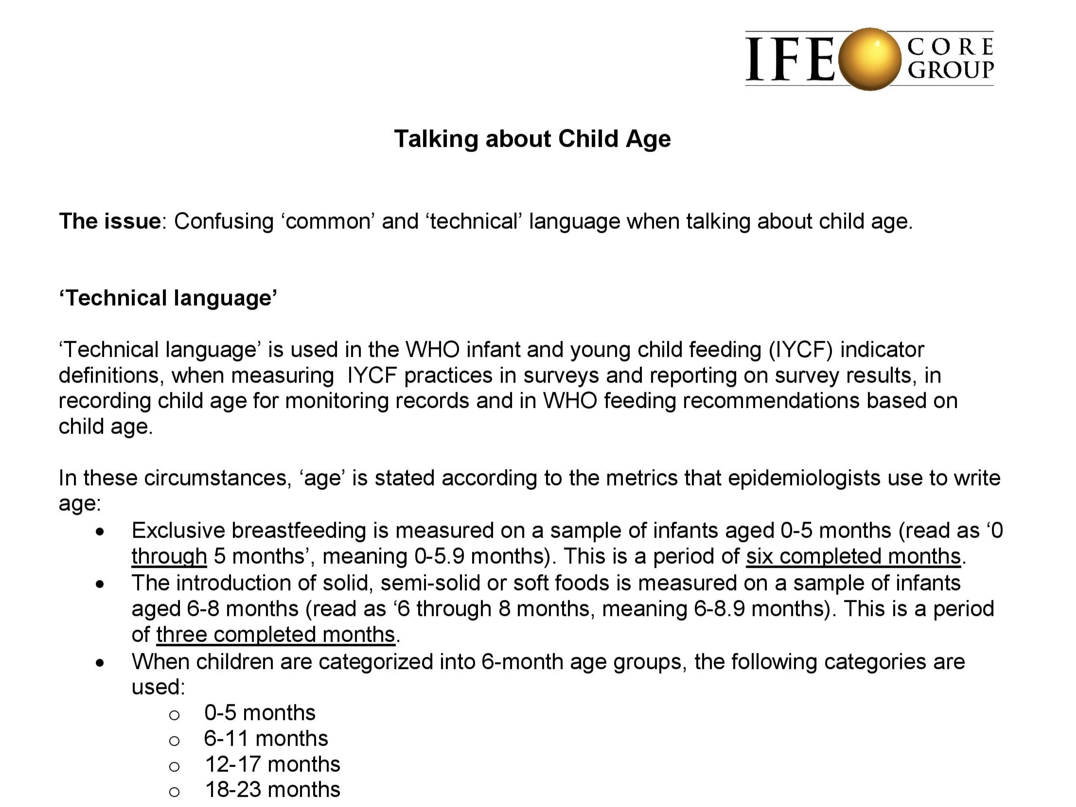IFE Core Group. 2012. Talking about IYCF and child age: a briefing.