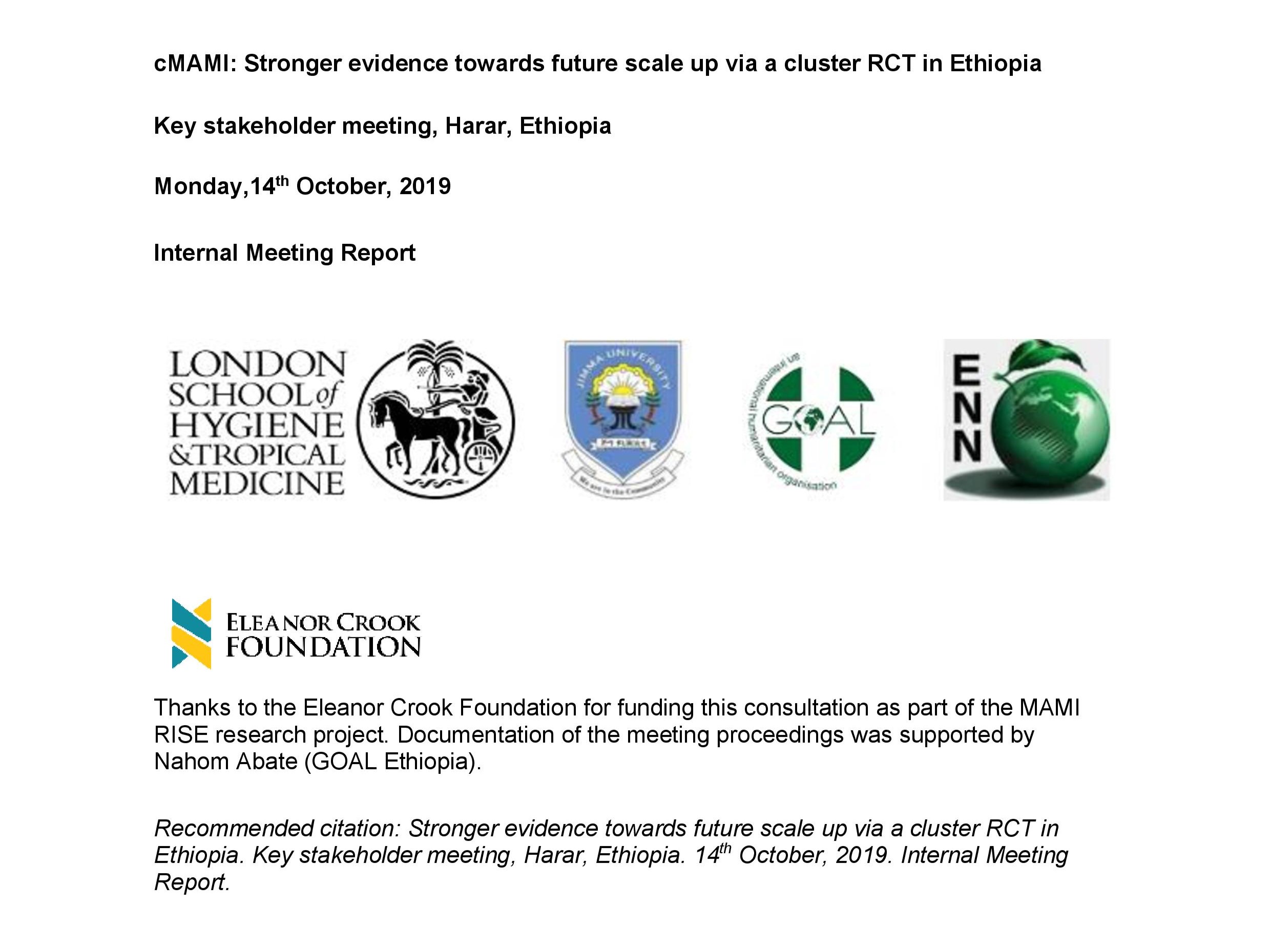 London School of Hygiene and Tropical Medicine (LSHTM), Jimma University (Ethiopia), GOAL, and the Emergency Nutrition Network (ENN). 2019. Cluster Randomised Trial in Ethiopia: Key stakeholder meeting, Harar, Ethiopia.
