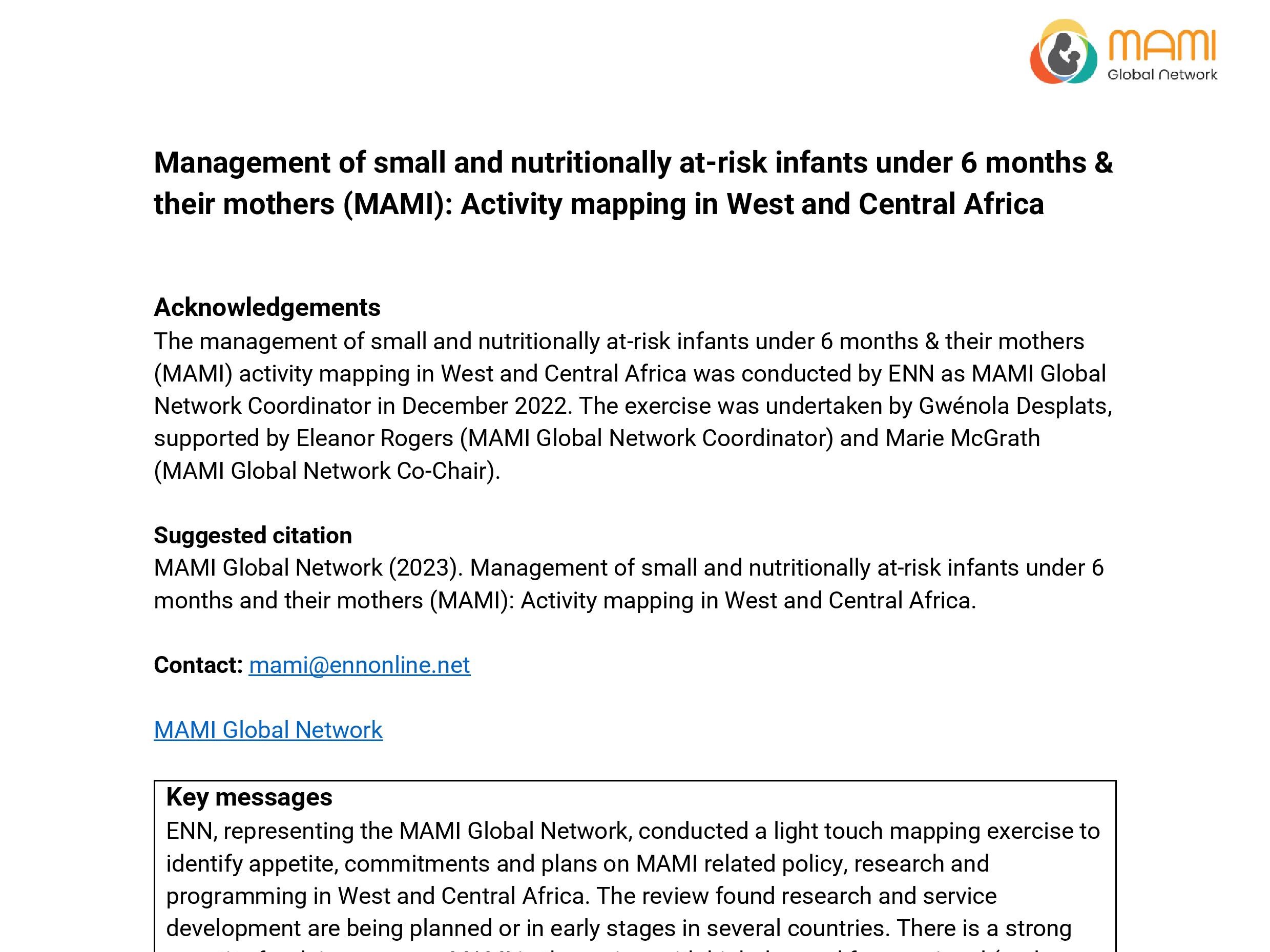 MAMI Global Network, ENN. 2023. Management of small and nutritionally at-risk infants under 6 months & their mothers (MAMI): Activity mapping in West and Central Africa.
