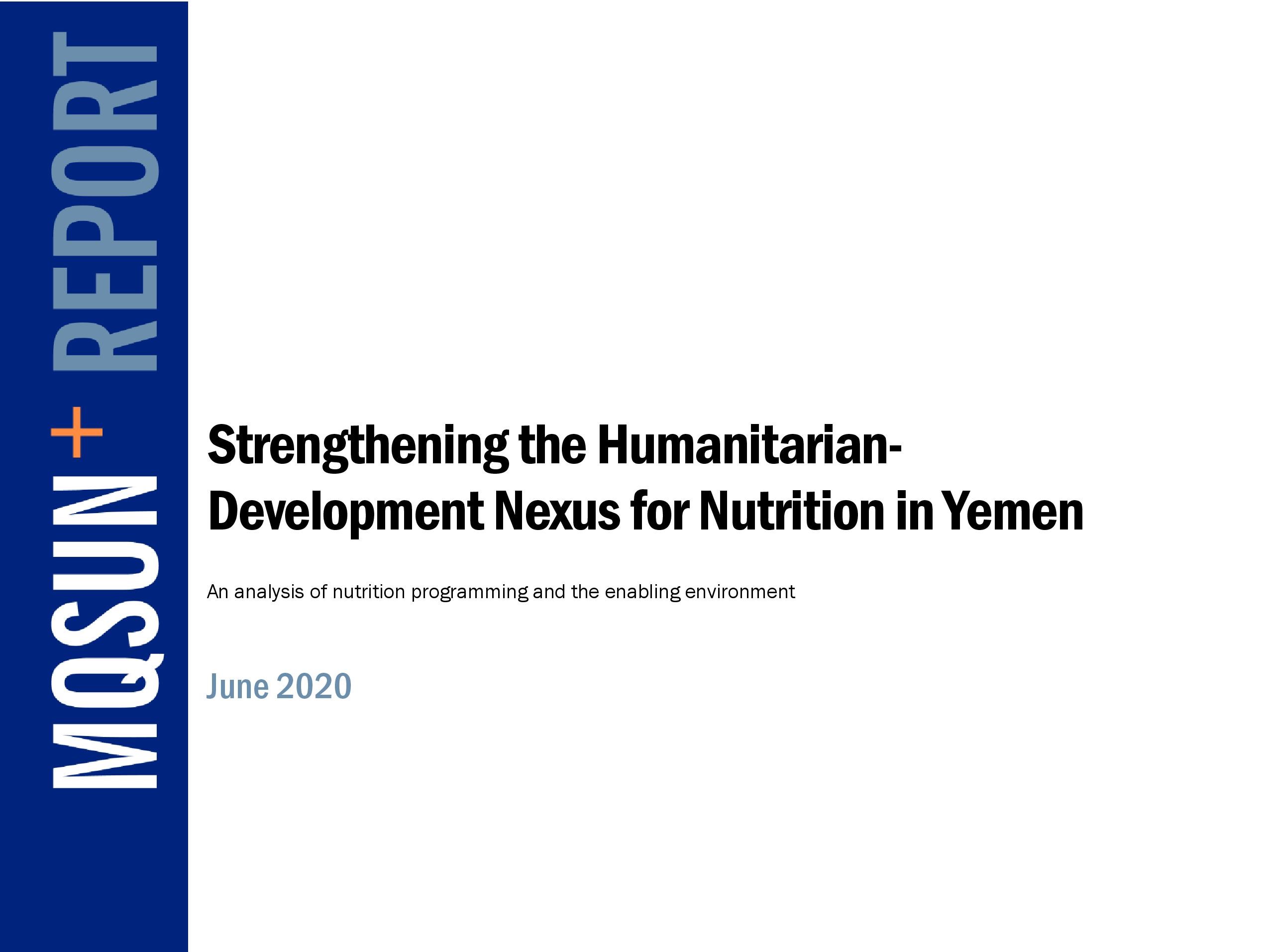 Front cover of case study report titled, "Strengthening the Humanitarian-Development Nexus for Nutrition in Yemen."