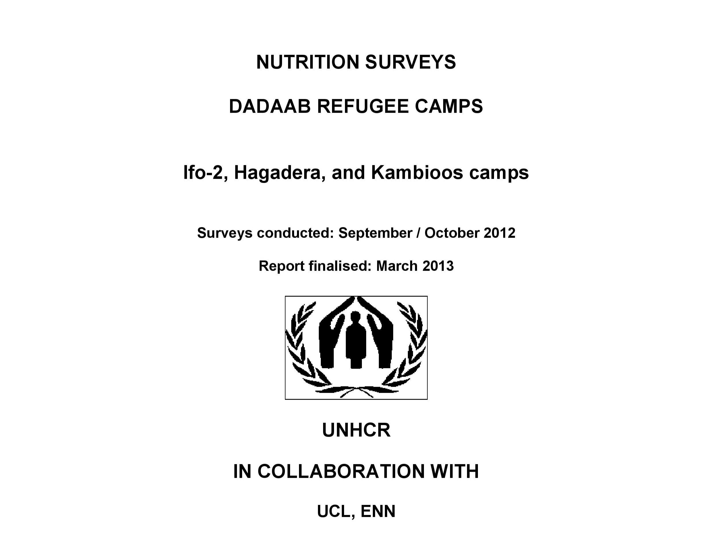 UNHCR wiht UCL, ENN, KRCS, IRC, GIZ, IMC, ADEO, WFP and UNICEF. 2013. Nutrition Surveys Dadaab Refugee Camps.