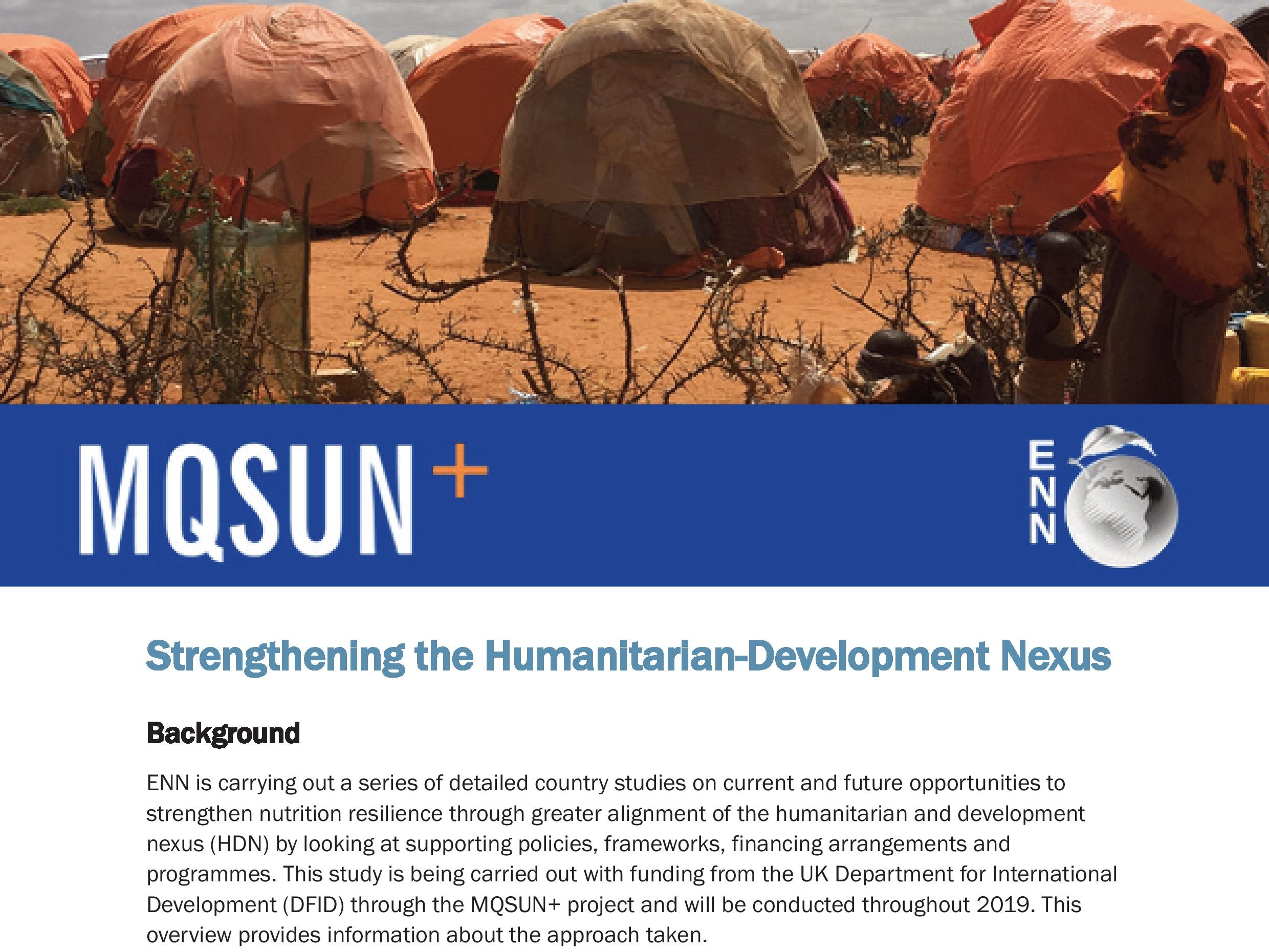 ENN is carrying out a series of detailed country studies on current and future opportunities to strengthen nutrition resilience through greater alignment of the humanitarian and development nexus (HDN) by looking at supporting policies, frameworks, financing arrangements and programmes.