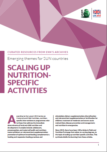 Natalie Sessions and Judith Hodge. 2019. Emerging themes for SUN countries: Scaling Up nutrition-specific activities.