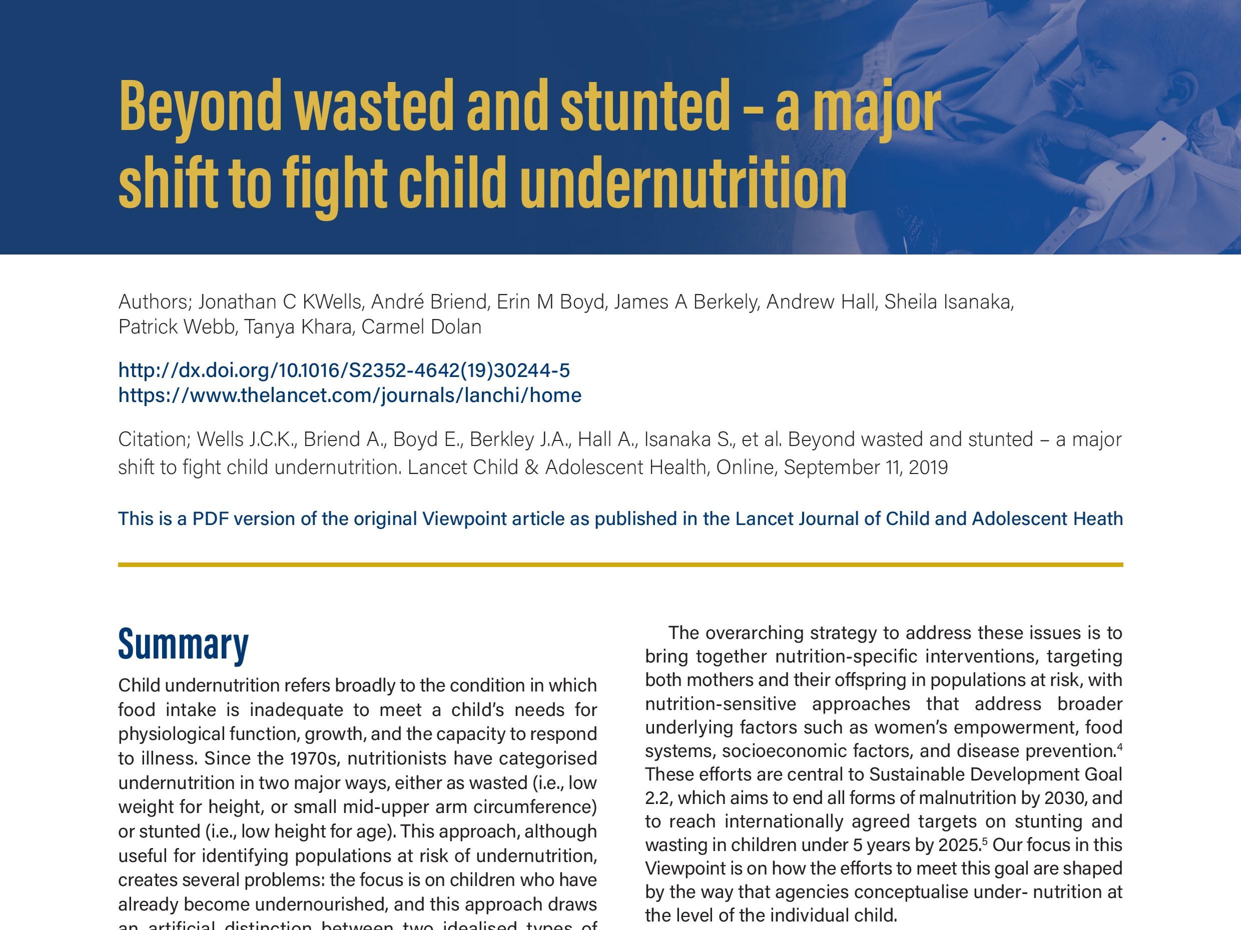 Beyond wasted and stunted—a major shift to fight child undernutrition