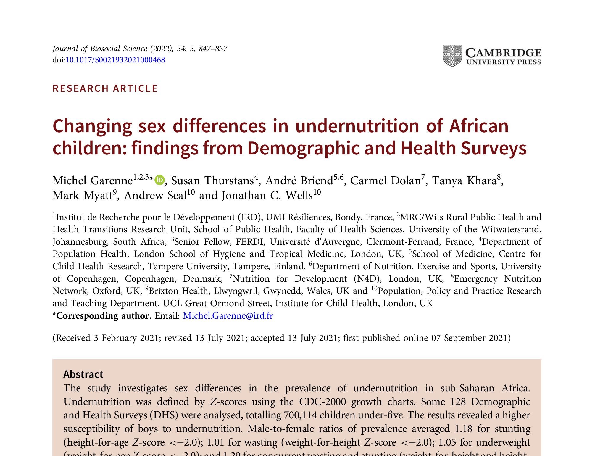 Changing sex differences in undernutrition of African children: findings from Demographic and Health Surveys